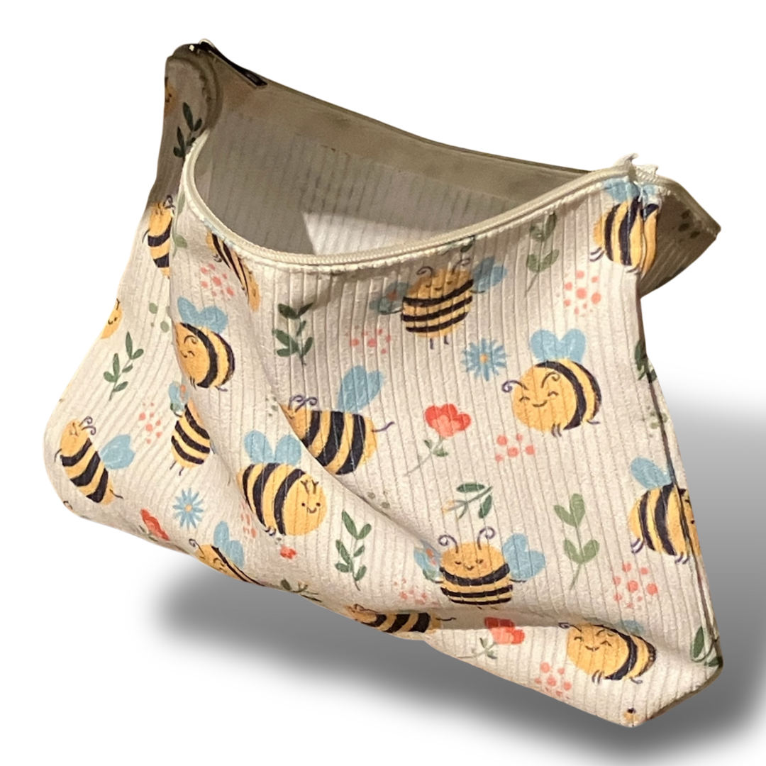 Trousse “Abeilles sur fond miel” – 26 × 18 cm (Velours côtelé)