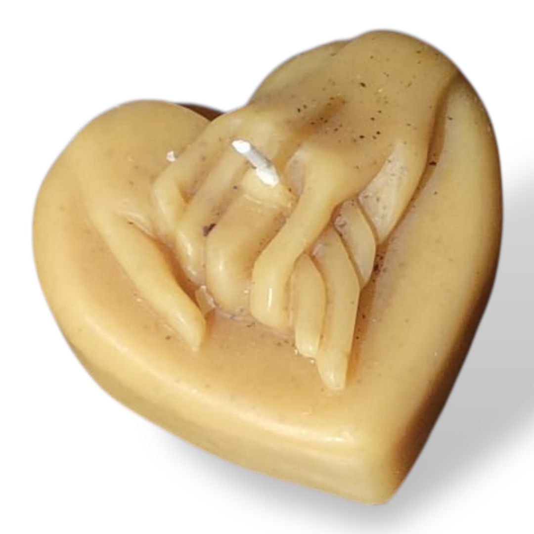 Bougie cire d'abeille mains entrelacées