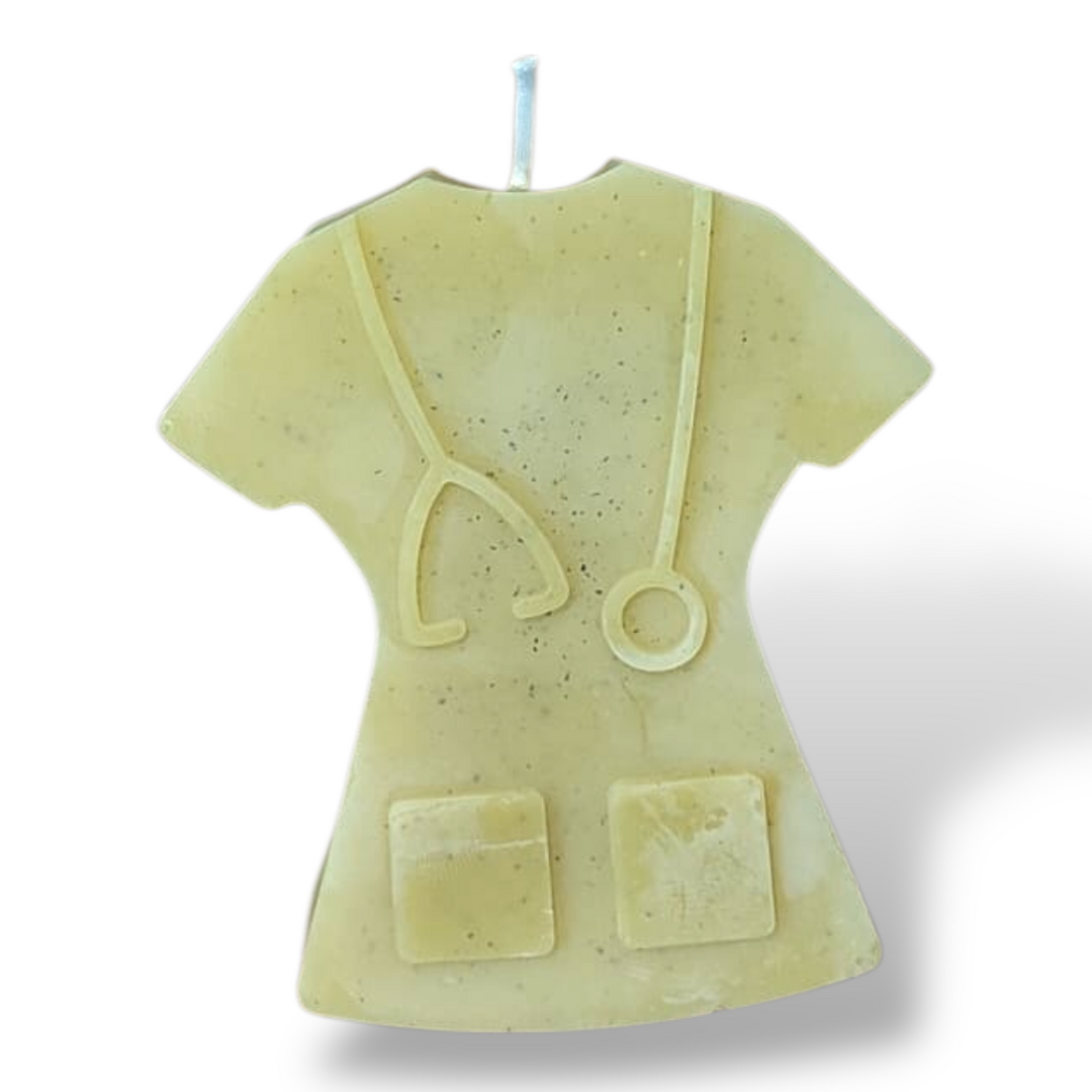 Exprimez votre gratitude avec cette bougie artisanale “Blouse médicale”, façonnée à la main à partir de cire d’abeille pure 🐝