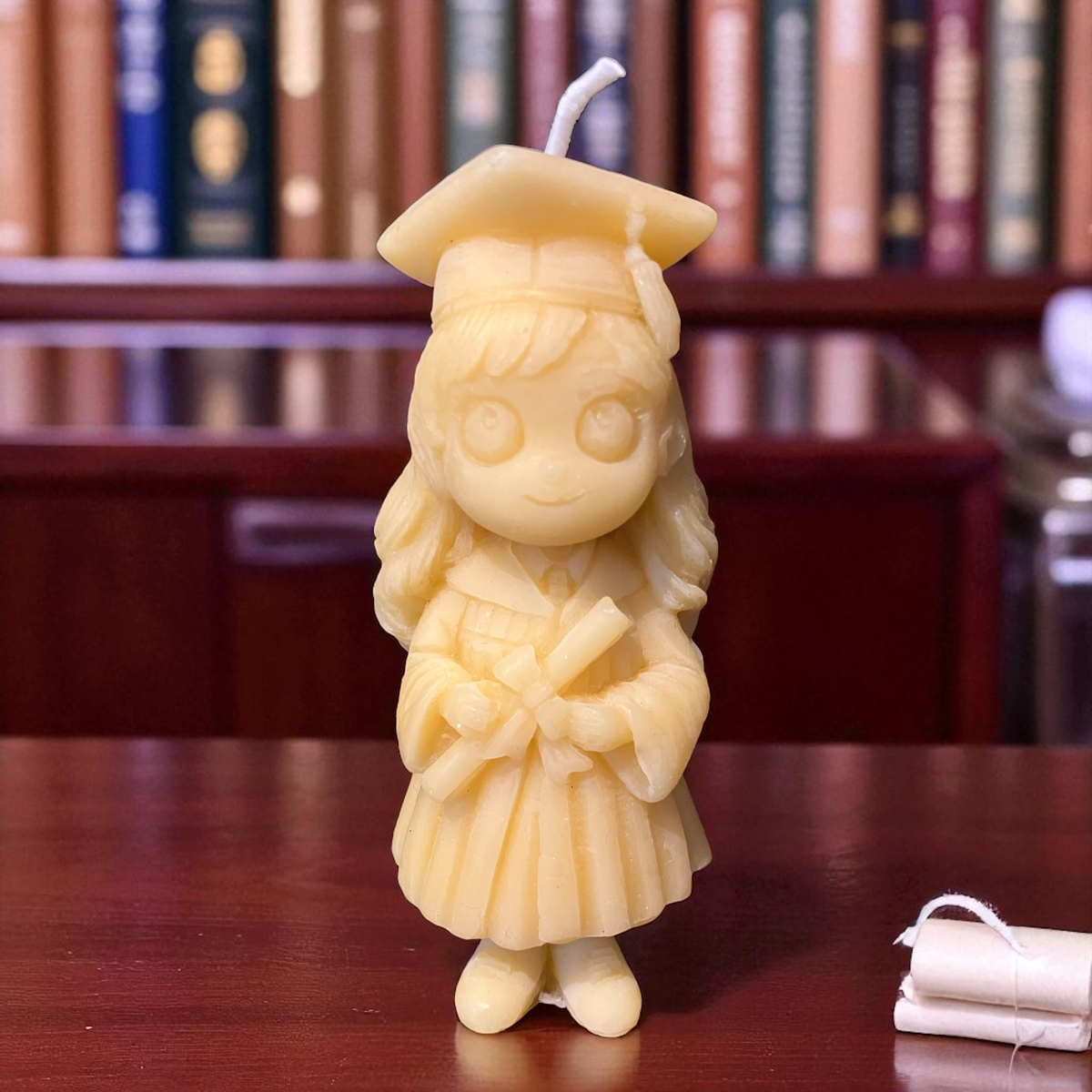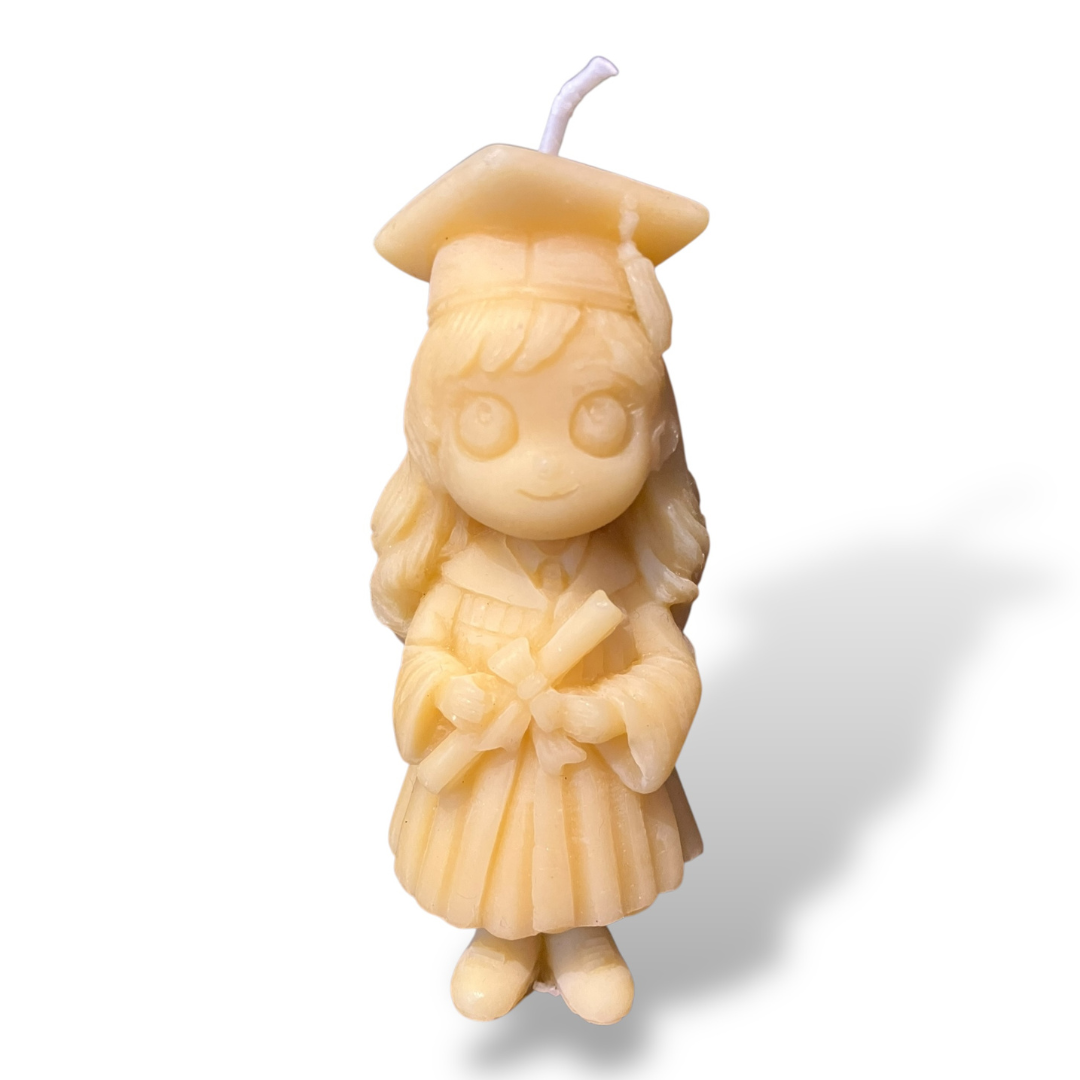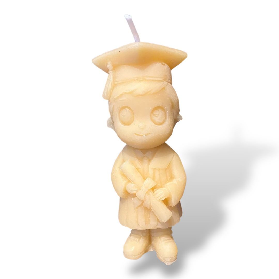 Félicitez un étudiant ou une étudiante pour sa réussite avec ces magnifiques bougies en cire d’abeille naturelle “Étudiant Diplômé” 🐝