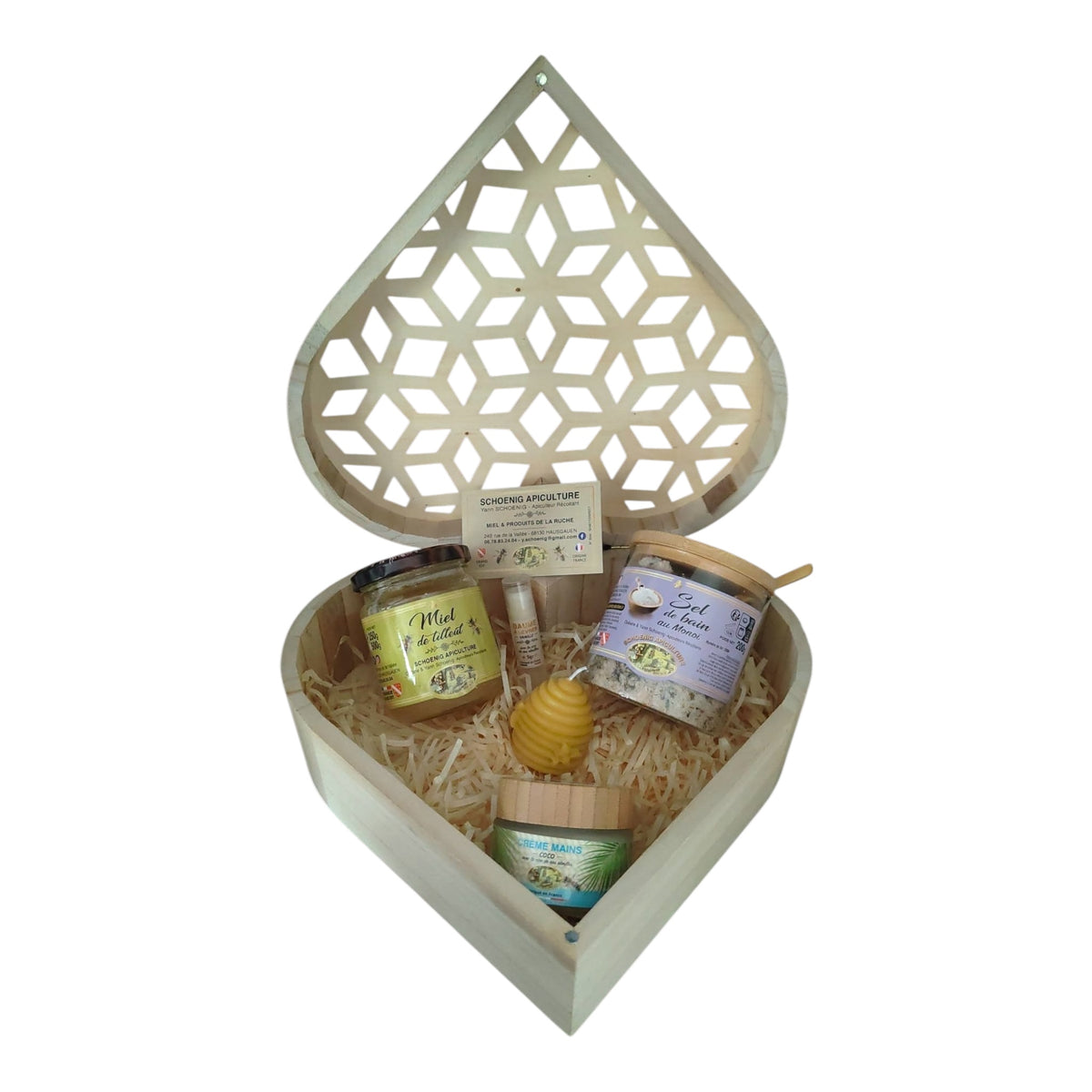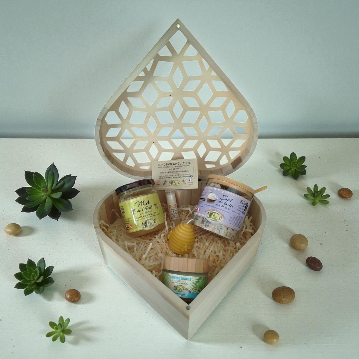 Le Coffret “Cœur du Rucher” est une création artisanale pensée pour offrir un moment de douceur et de soin naturel.