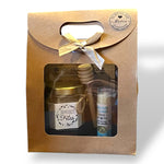Offrez un cadeau unique et raffiné avec notre Coffret Douceur de Noël, une création artisanale parfaite pour Noël. Ce coffret élégant et écoresponsable est composé d’un petit pot de miel artisanal de 60 g, accompagné d’un baume à lèvres nourrissant fabriqué avec notre cire d'abeille pure. Le baume à lèvres est disponible en plusieurs parfums délicieux : nature, coco, framboise ou vanille. N’hésitez pas à préciser votre parfum préféré lors de la commande !