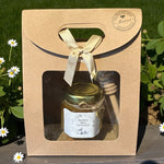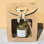 Il contient un petit pot de miel artisanal de 60 g, accompagné de sa cuillère en bois, d’une ficelle naturelle, et d’une petite abeille décorative.