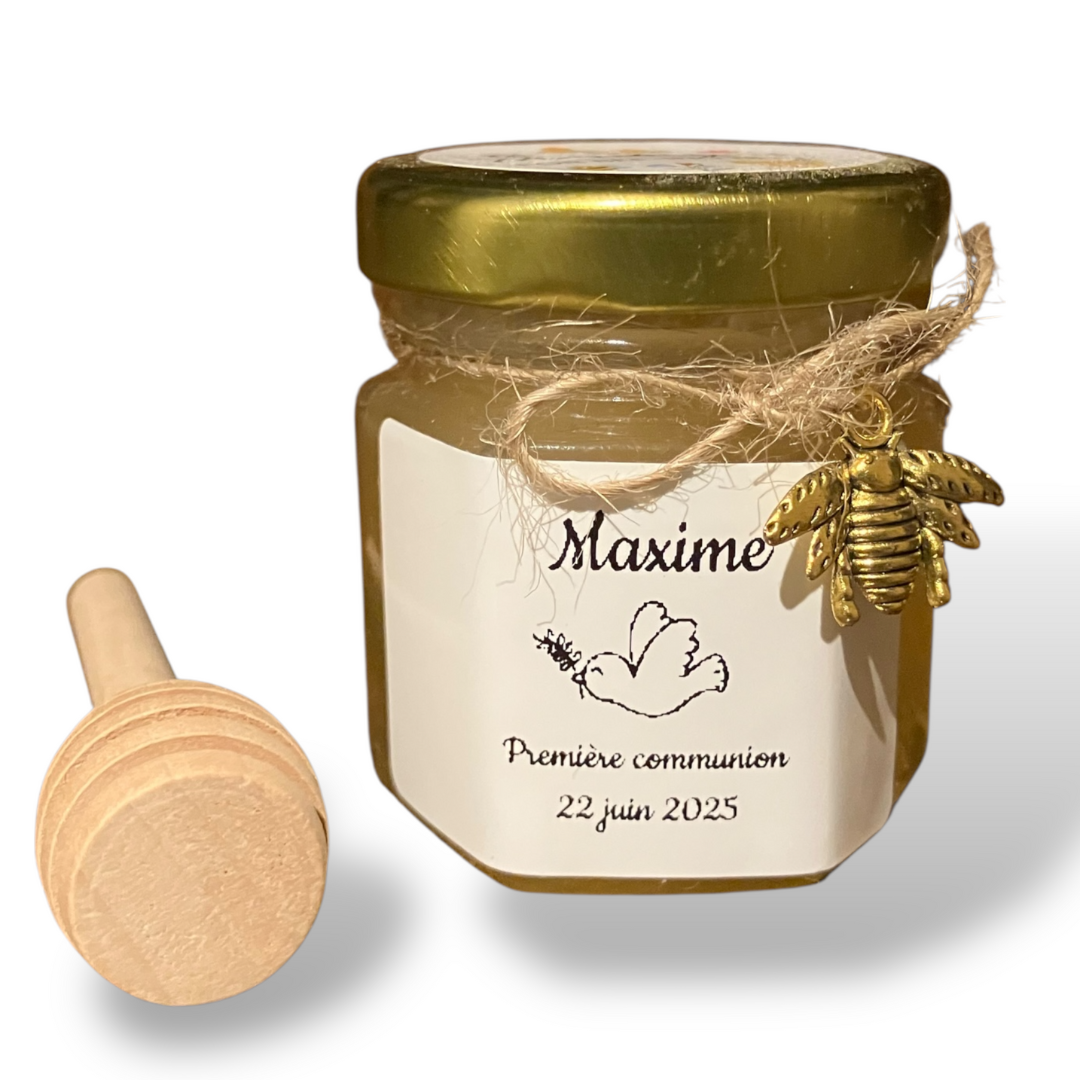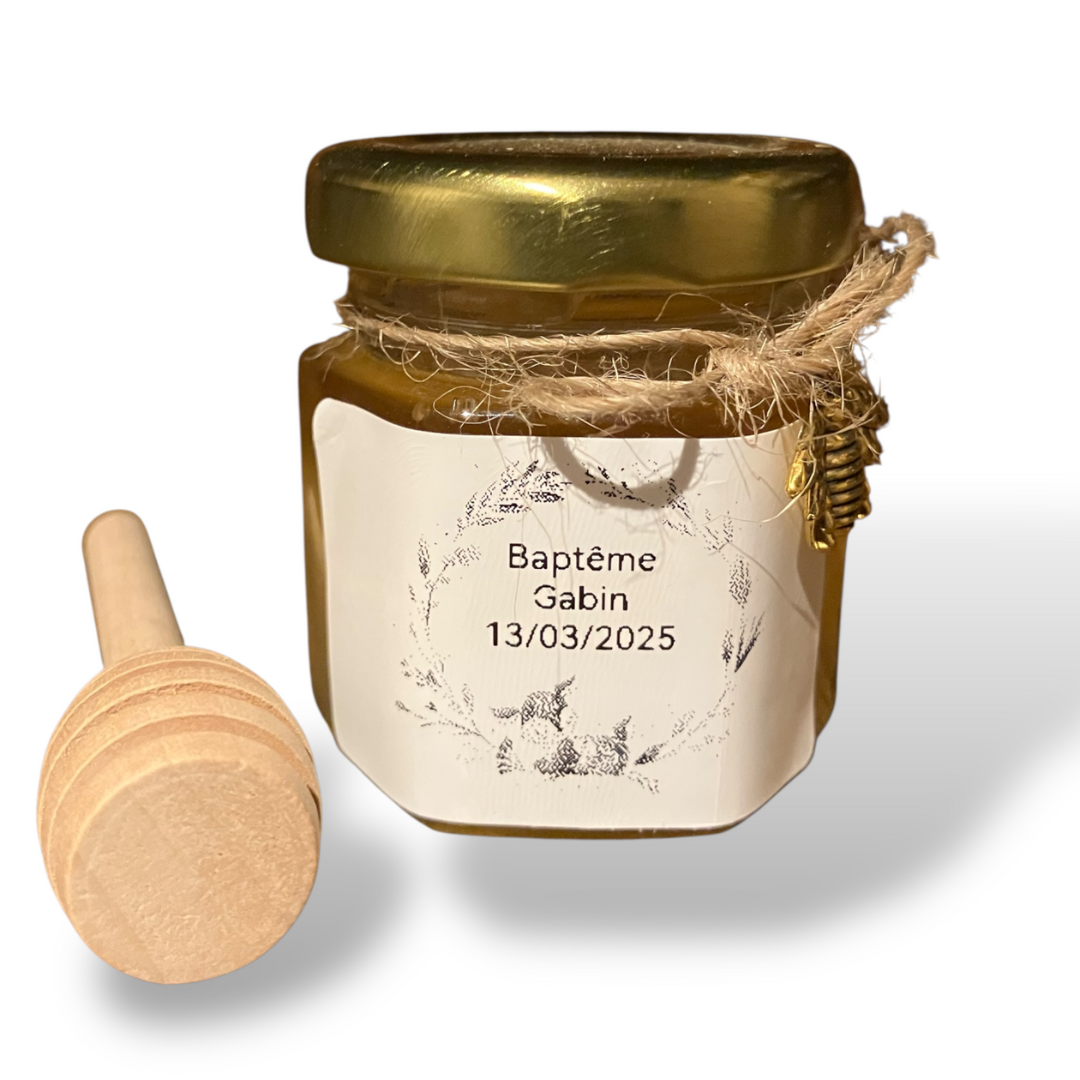 Offrez à vos invités un souvenir aussi doux que naturel avec notre mini pot de miel personnalisé.
