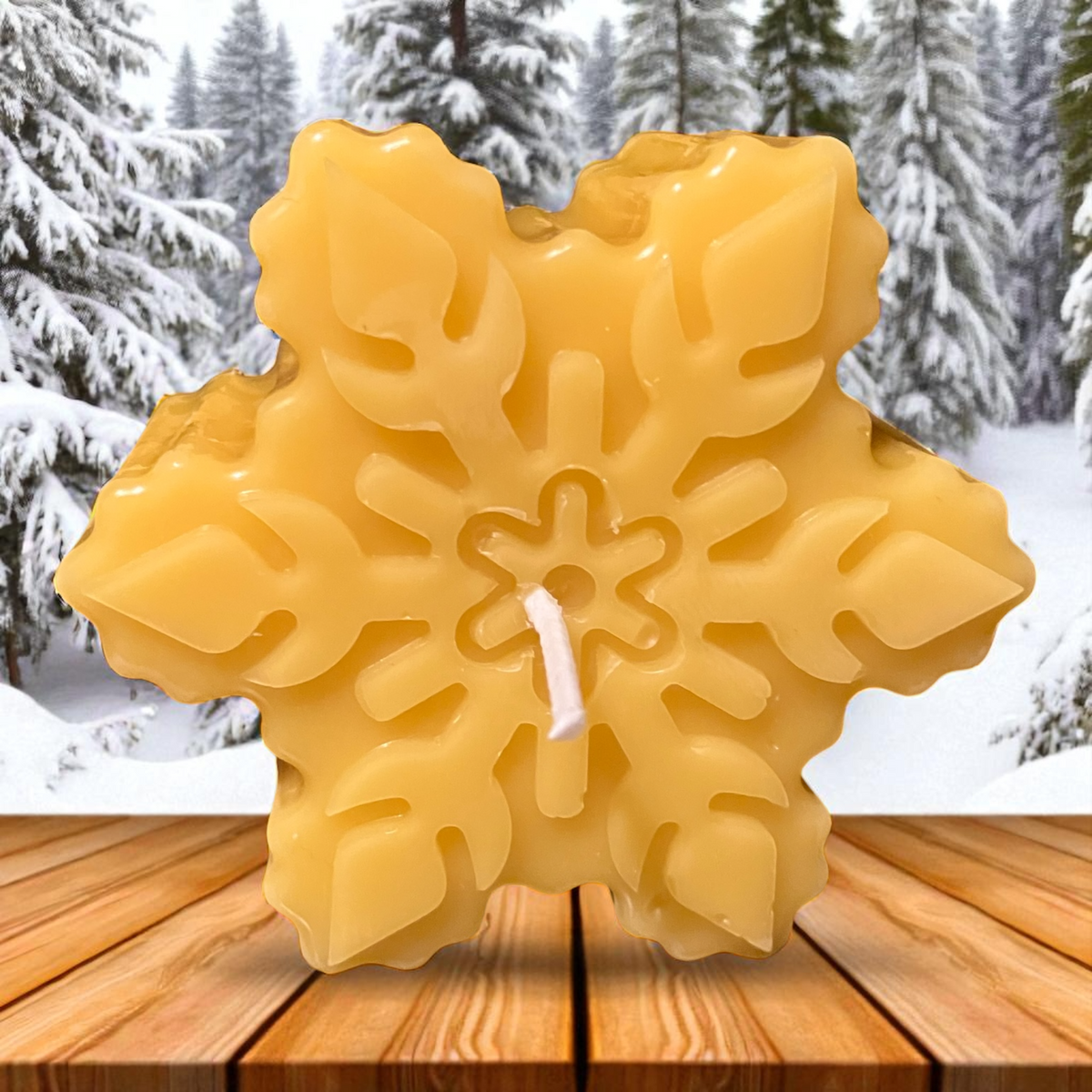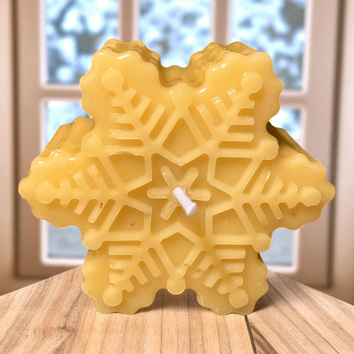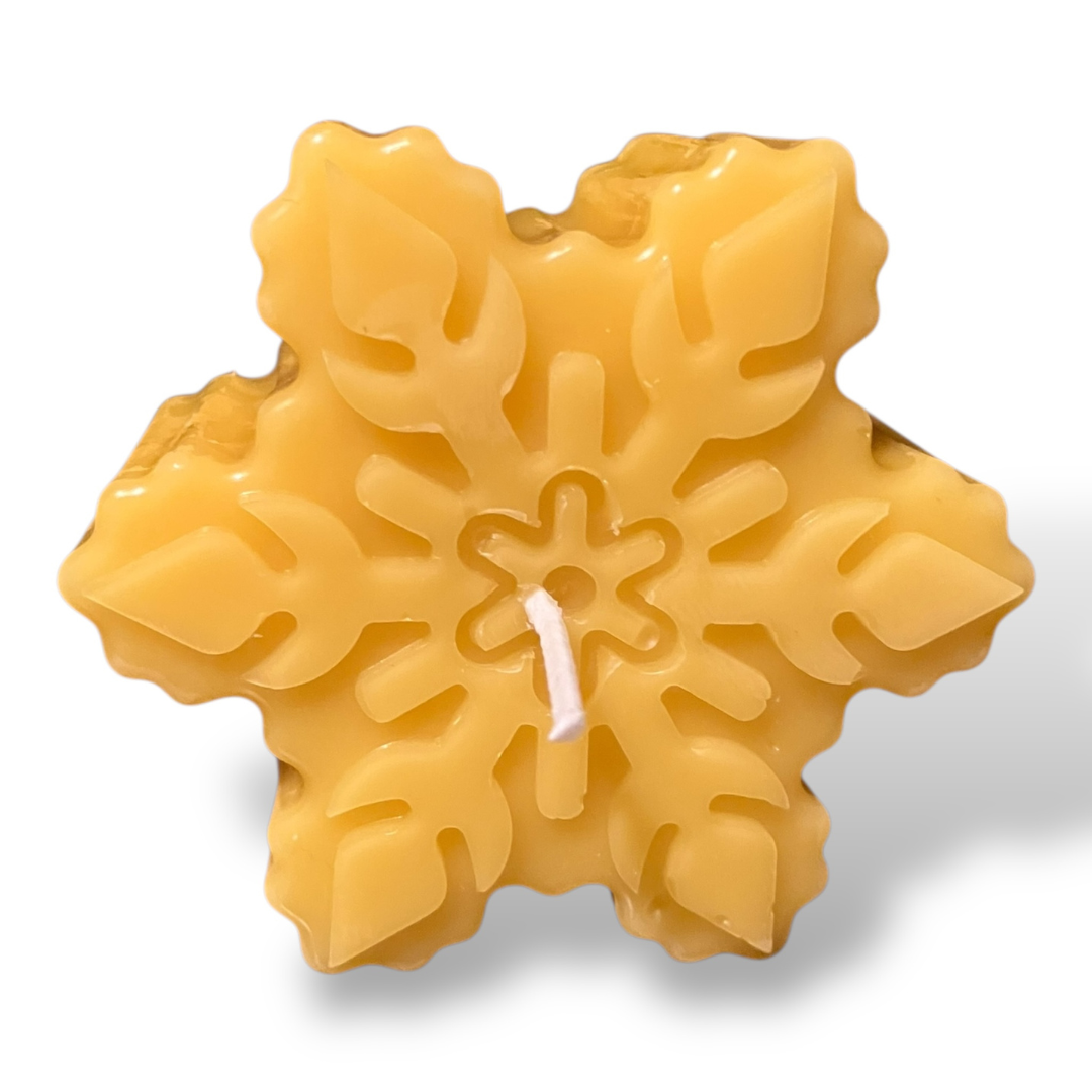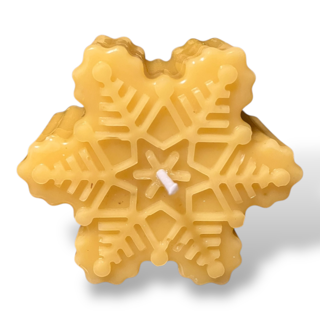 Coulées à la main dans notre atelier apicole en Alsace, nos bougies flocons de neige allient authenticité, élégance et respect de la nature.