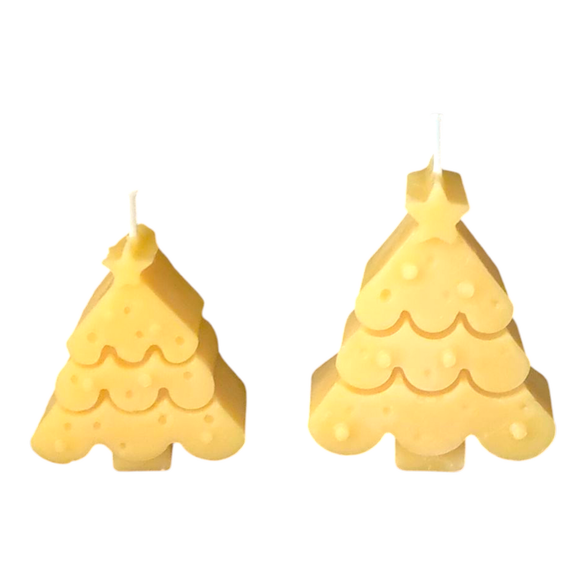 Ces bougies, réalisées à partir de cire d’abeille pure issue de nos ruches du Sundgau (Alsace), reprennent la forme du sapin traditionnel surmonté d’une étoile, symbole de lumière et d’espérance.