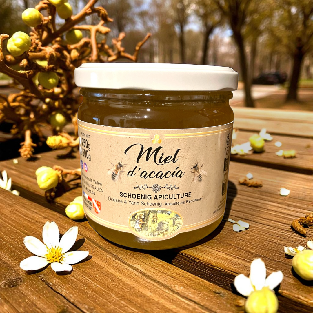 Récolté avec passion par Schoenig Apiculture, dans le Haut-Rhin au cœur de l’Alsace, notre miel d’acacia séduit par sa douceur florale, sa robe dorée limpide et sa texture fluide incomparable.